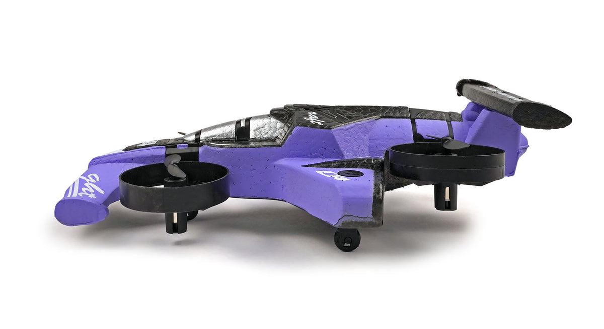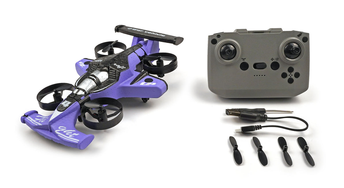 - 2-IN-1 hybrid design – transforms between flying quadcopter and drift car