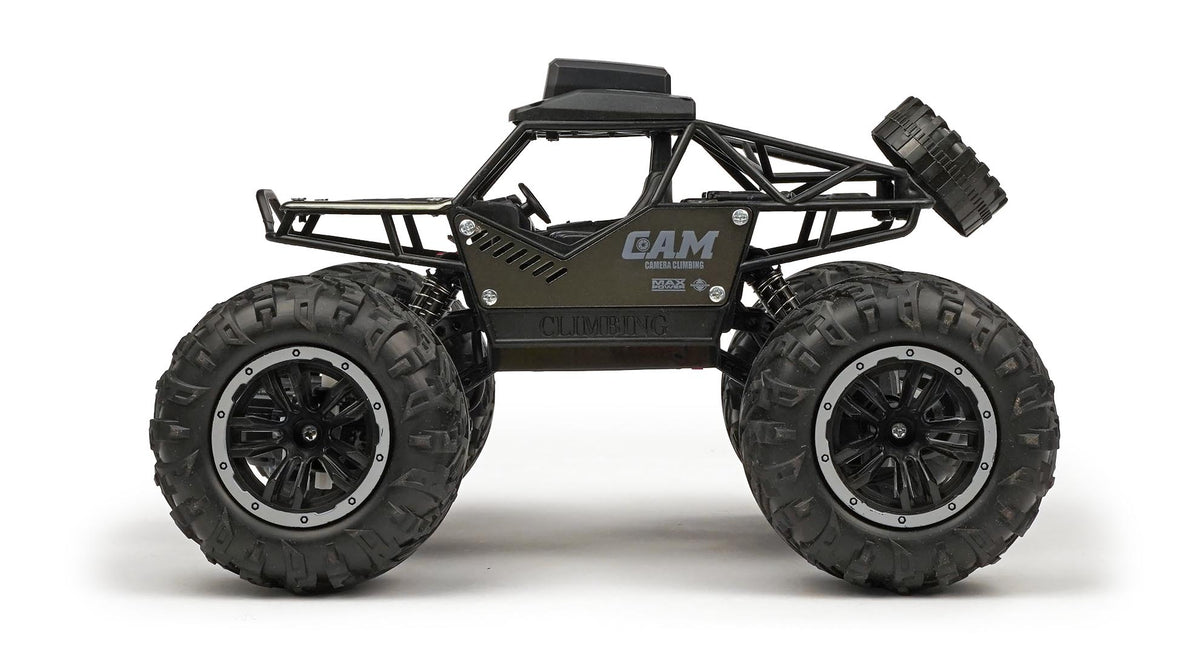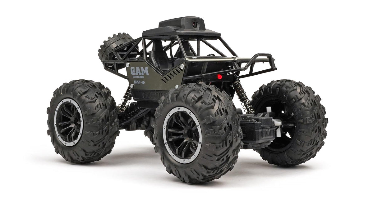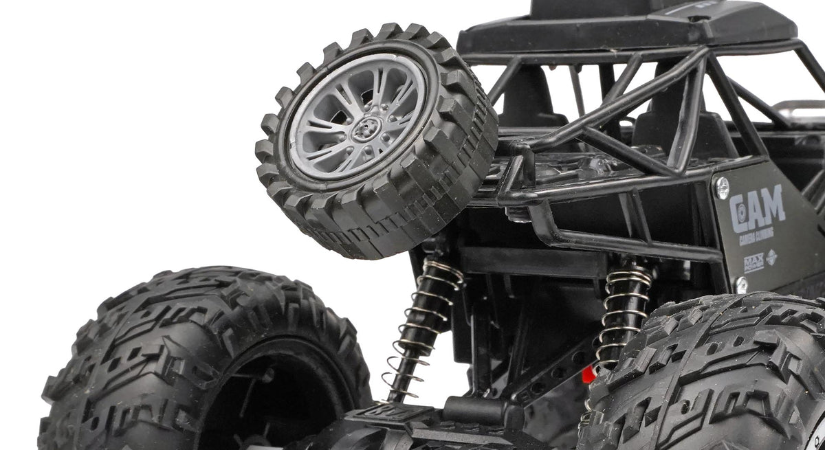 The RCG Racing 1/18 FPV Rock Crawler puts you directly behind the wheel with its built-in first-person-view camera, streaming real-time video straight to the transmitter. Whether you’re climbing over rocks, weaving through the garden, or exploring indoors, this crawler gives you a completely new way to drive — you’re not just watching the car, you’re inside it.